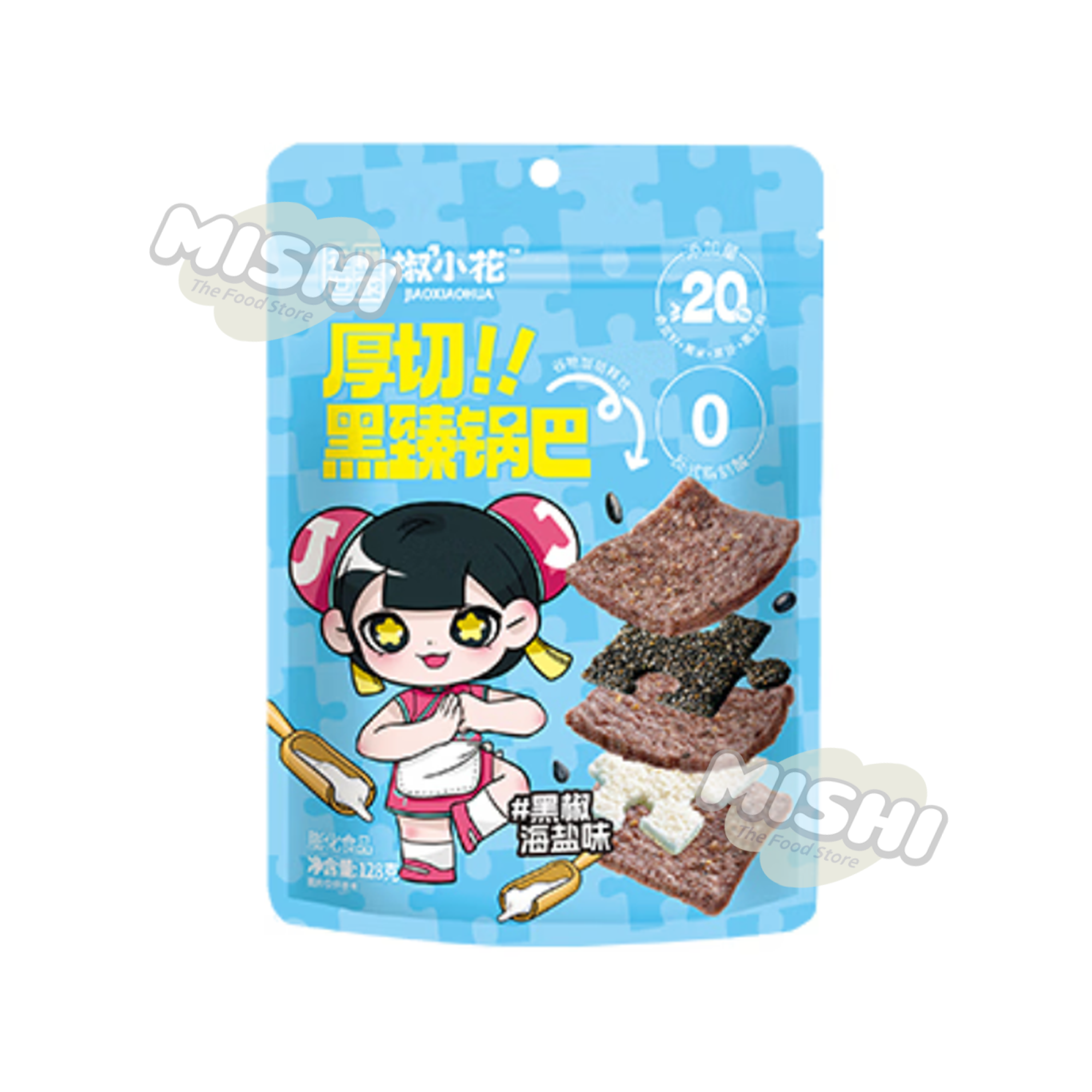 JIAOXIAOHUA Thick-Cut Black Rice Cracker Black Pepper & Sea Salt 128g