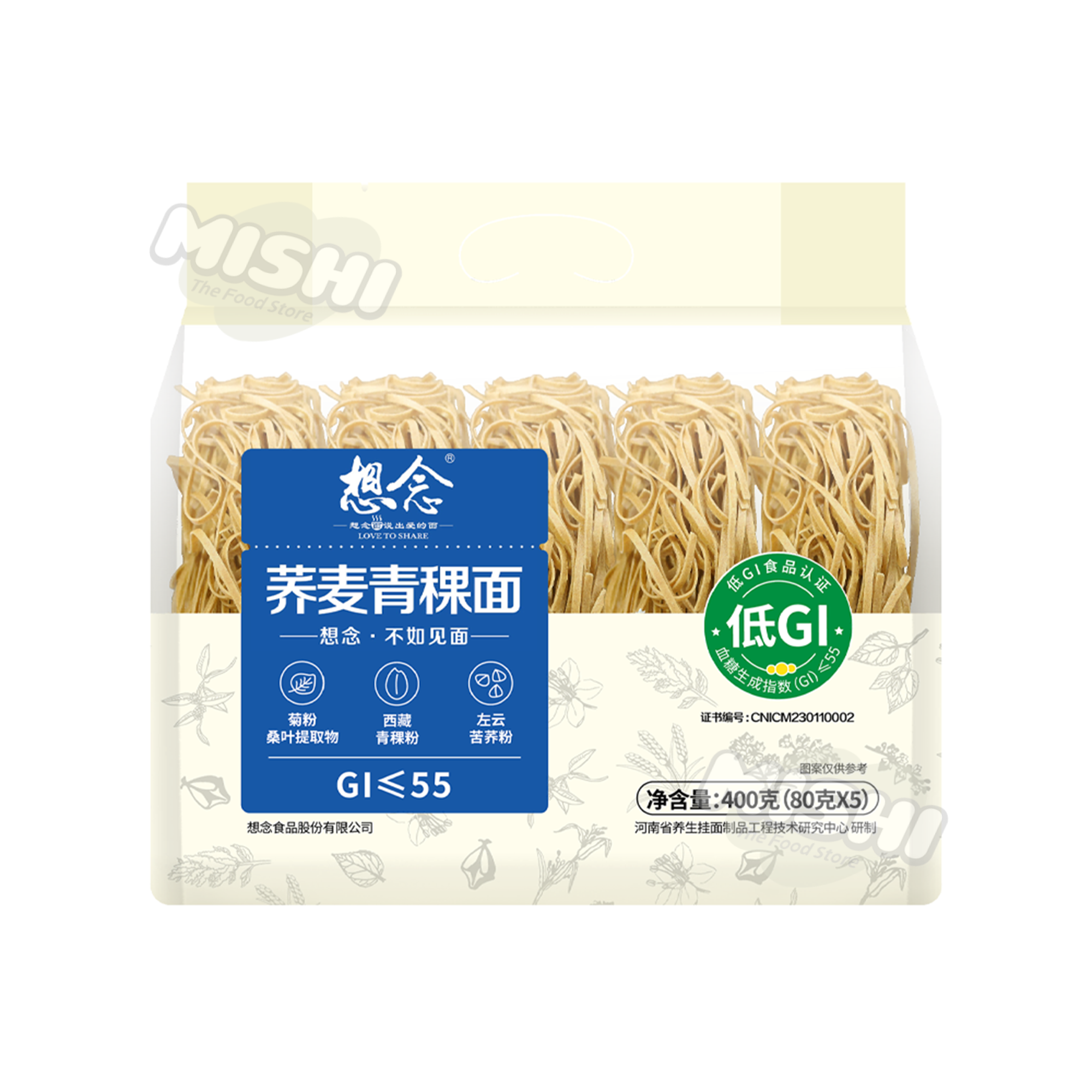 Xiang Nian Buckwheat & Highland Barley Noodles 2mm Thickness (5-piece pack) 400g