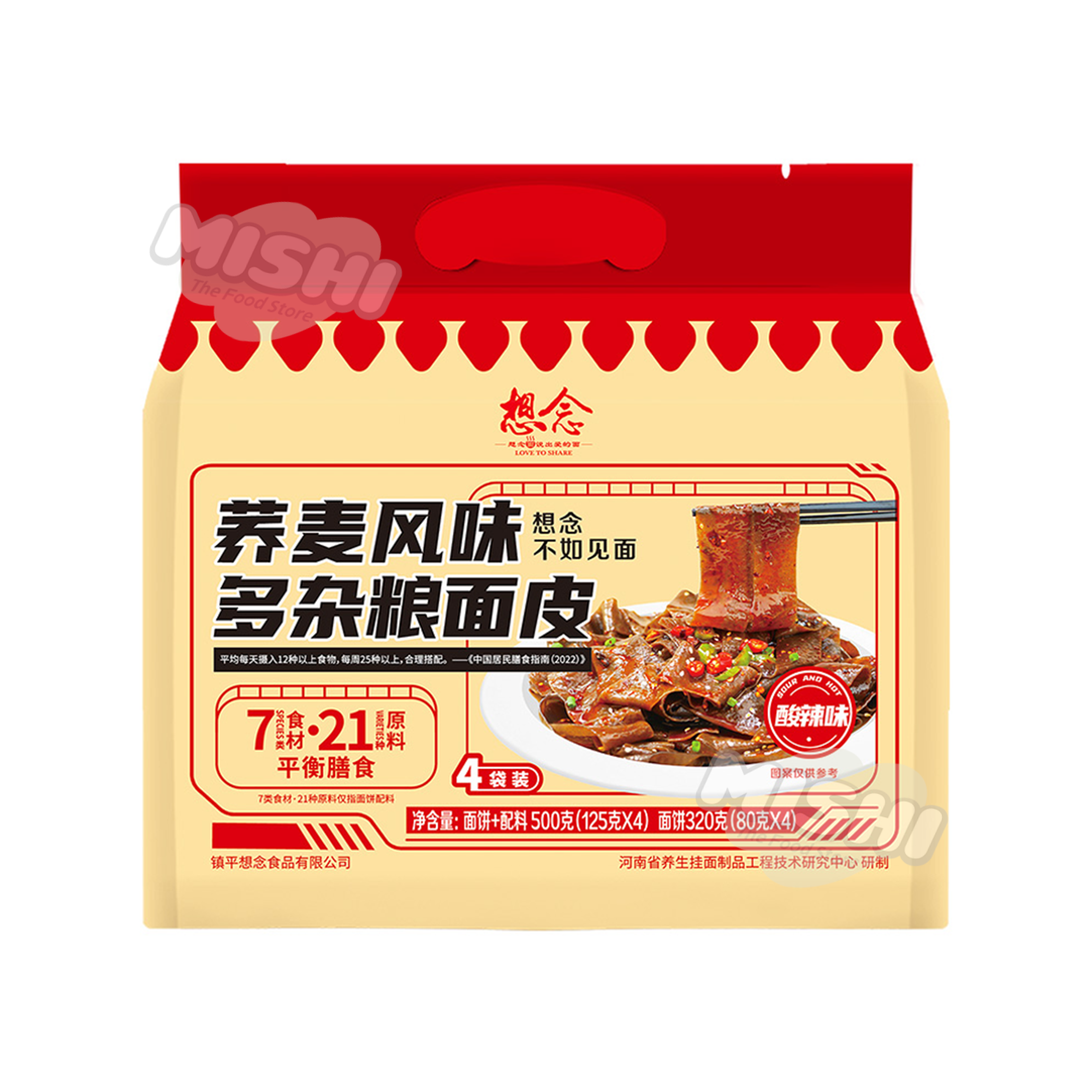 想念荞麦多谷物面皮酸辣4连包500g